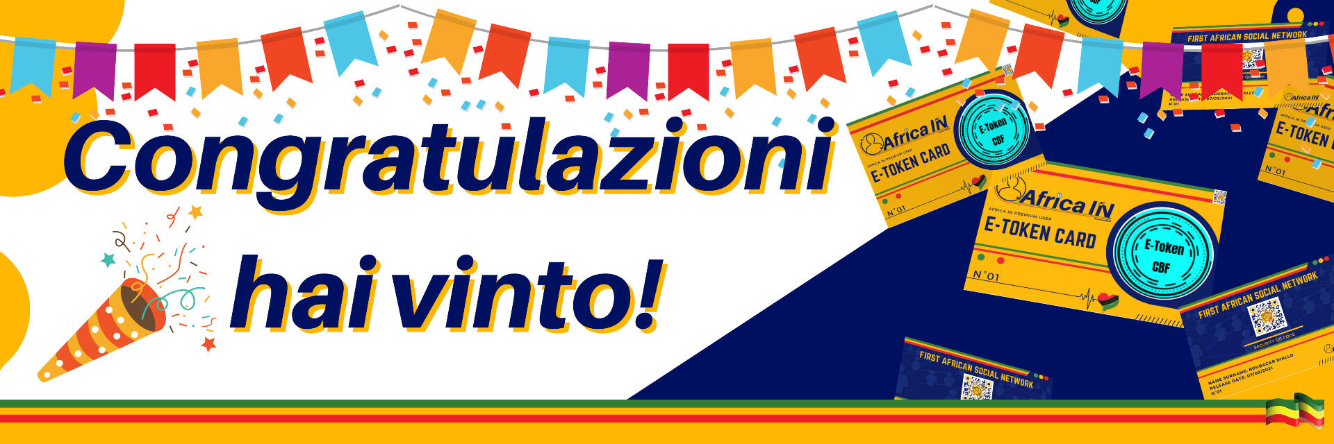 Complimenti, hai vinto un abbonamento su Africa IN, compila il form, scegli tra uno dei profili PREMIUM, PRO e TOP, per un anno sarà gratuito e godrai dei vantaggi dell' E-Token Card.Puoi comunque supportare il nostro lavoro con una donazione, clicca sul cuore, ci aiuterai così ad aggiungere altre funzioni sul Social Network Africano, AFRICA IN!